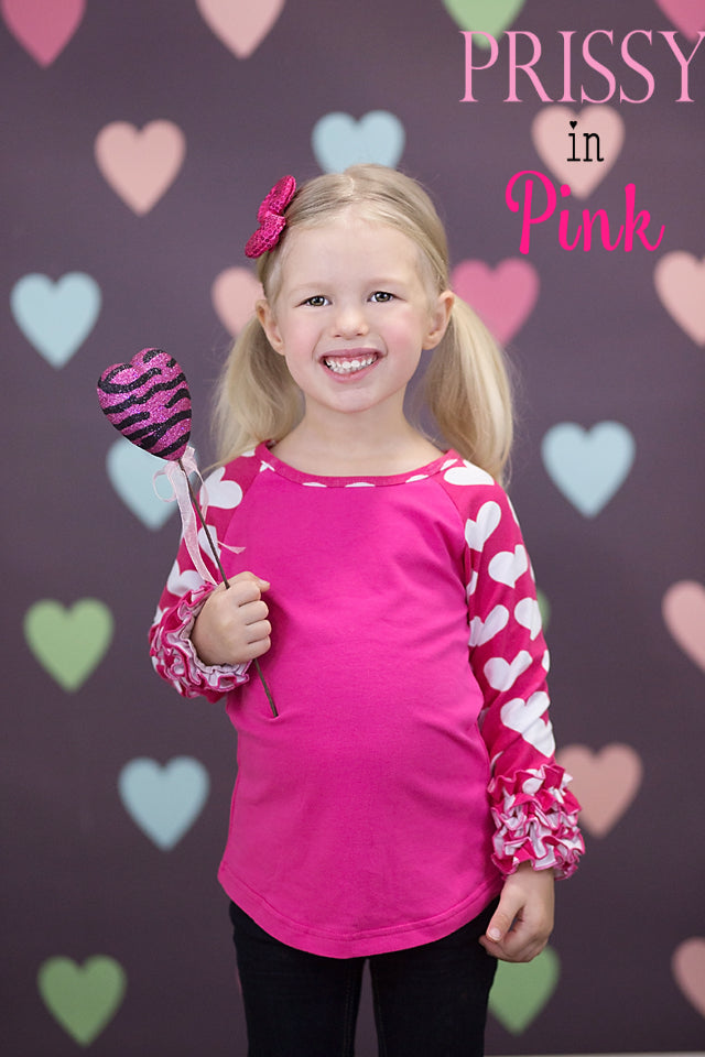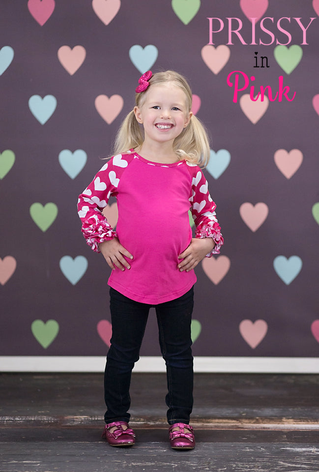 Our adorable hot pink/white ruffle raglan t-shirt is perfect for the Holidays!
